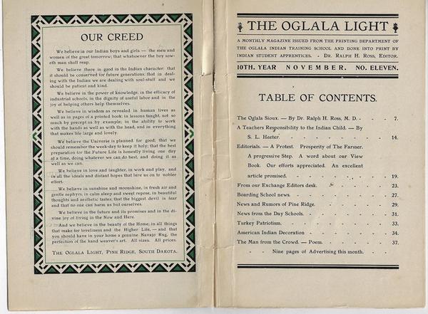 THE OGLALA LIGHT. A MONTHLY MAGAZINE ISSUED FROM THE PRINTING DEPARTMENT OF THE OGLALA INDIAN TRAINING SCHOOL AND DONE INTO PRINT BY INDIAN STUDENT APPRENTICES. 10th Year